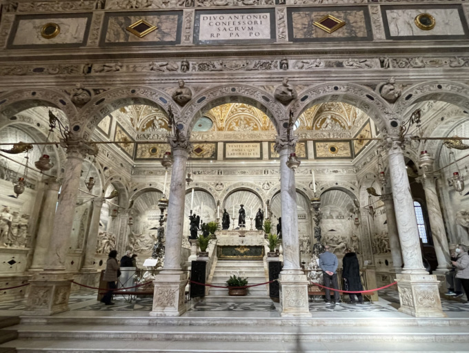 Acquistano così nuova visibilità la cappella del Beato Luca Belludi, con gli affreschi di Giusto de’ Menabuoi, la cappella di San Giacomo affrescata da Altichiero e Jacopo Avanzi, riconosciuti patrimonio Unesco, il presbiterio, con i bronzi di Donatello, Bartolomeo Bellano e Andrea Riccio, e la cinquecentesca cappella dell’Arca, vero scrigno cinquecentesco in bianco e oro che custodisce il corpo del Santo.
