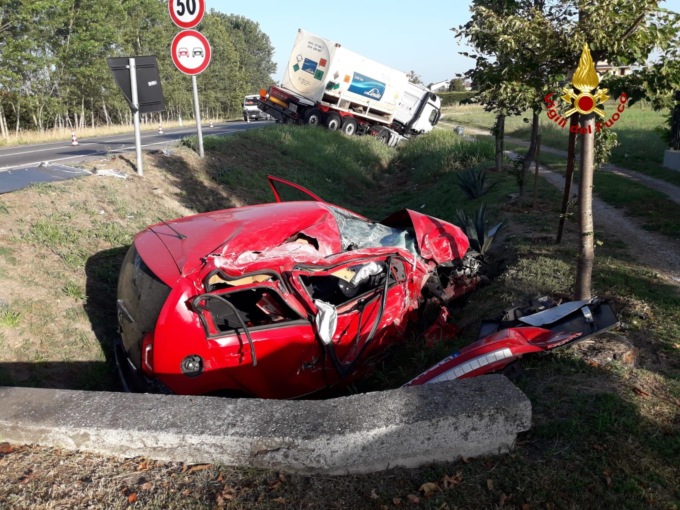 Il secondo incidente, poco dopo le 6 di venerdì, lungo la SR 309 Romea, tra un’autocisterna vuota adibita al trasporto di gas argon e un’auto, entrambi finiti fuoristrada: ferito l’autista dell’utilitaria. I vigili del fuoco hanno messo in sicurezza i mezzi e tamponato una perdita di gasolio dal serbatoio del camion, mentre l’automobilista è stato preso in cura dal personale del SUEM e trasferito in pronto soccorso. Ancora in corso le operazioni di recupero del mezzo pesante.