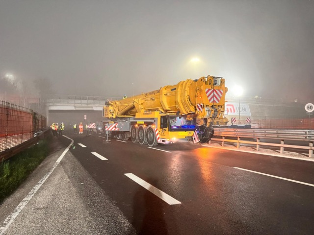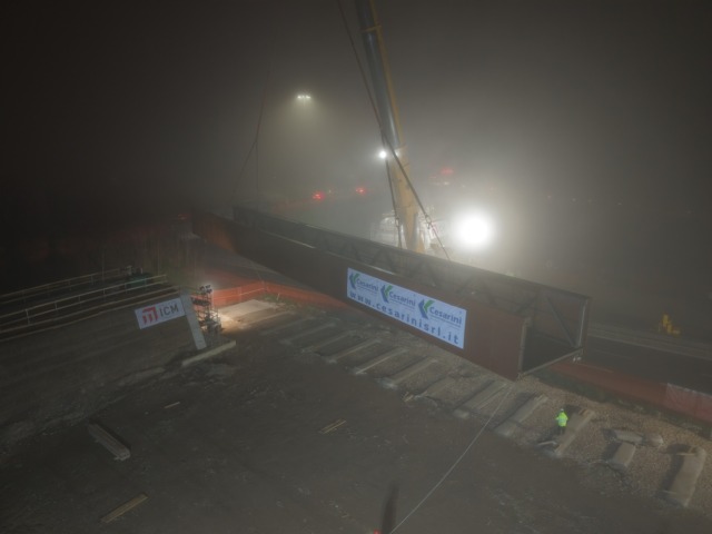 Sul posto erano presenti 30 persone che, dalle 21, hanno lavorato senza sosta per montare un’autogru capace di sollevare la passerella di 45 metri di lunghezza che pesa oltre 50 tonnellate. L’installazione è durata 7 ore, riaprendo il tratto alle ammobili alle sette del mattino come era previsto.