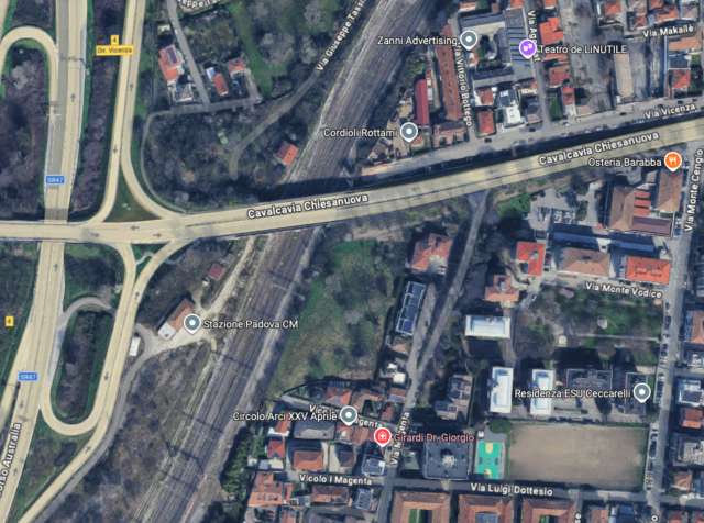 Dopo mesi di lavoro e una nottata intensa è stata installata la passerella ciclopedonale che collegherà via Vicenza e via Chiesanuova di Padova, affiancando il cavalcavia.