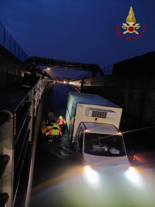 Questa mattina, durante un sorvolo dell’elicottero Drago del reparto volo di Venezia, i sommozzatori si sono calati nella zona di Albignasego (Padova) per soccorrere due automobilisti rimasti intrappolati nei loro veicoli bloccati dall’acqua.
