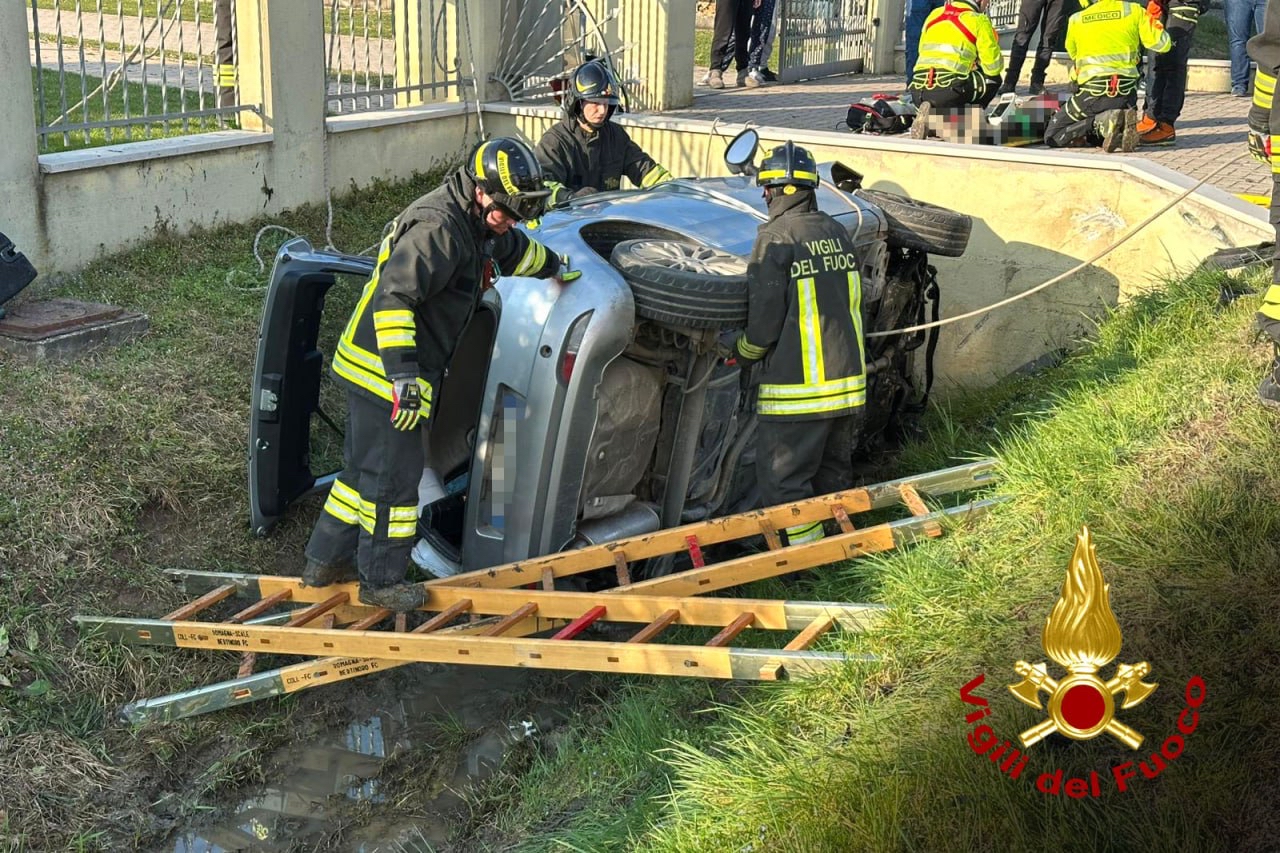 Le operazioni di soccorso e messa in sicurezza sono terminate intorno alle ore 17:30. Per la rimozione del veicolo dal fossato è stato necessario l’impiego di un’autogrù dei Vigili del fuoco, che ha sollevato il mezzo permettendo il ripristino della normale circolazione stradale.