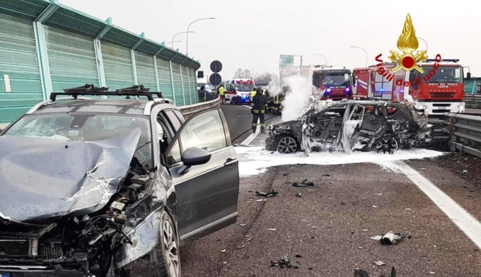 Poco dopo le 8:30 di stamattina, sabato 7 gennaio, i vigili del fuoco sono intervenuti in autostrada A4 nelle vicinanze dello svincolo di Padova Est, carreggiata Ovest in direzione Milano, per un incidente tra due auto con conseguente incendio di uno dei mezzi: tre feriti usciti autonomamente dalle rispettive automobili.