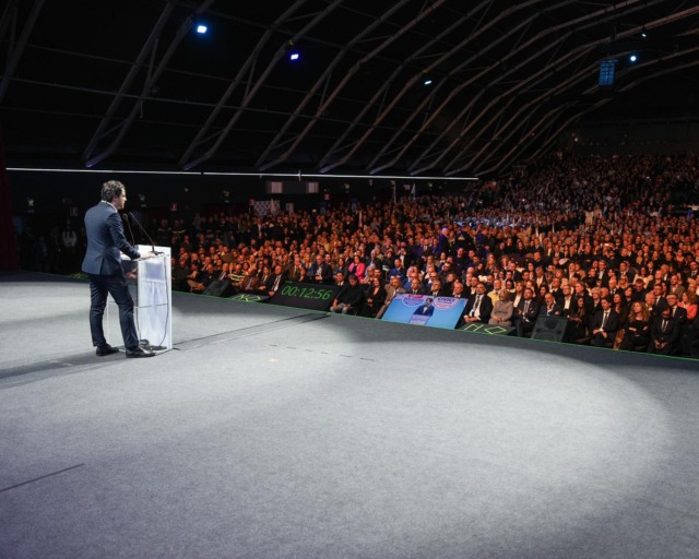 Per ultima, ma non per importanza, la Premier Giorgia Meloni, accolta dal pubblico del Gran Teatro Geox con uno sventolare di bandiere di Fratelli d’Italia.