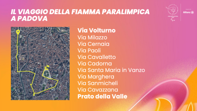 Mentre la fiamma delle Paralimpiadi si avvicina alla sua destinazione finale, la Città di Padova si sta organizzando per accoglierla al meglio. Infatti, la scaletta prevede il suo arrivo per la giornata di giovedì 5 gennaio 2026 per lasciarla il giorno dopo e dirigersi a Monselice.