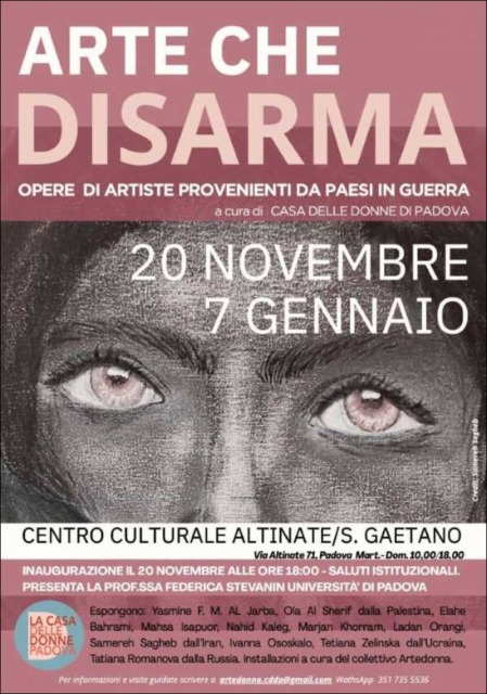 Sempre al Centro culturale San Gaetano di Padova, è stata organizzata la mostra “Arte che disarma. Opere di artiste provenienti da Paesi in guerra”.