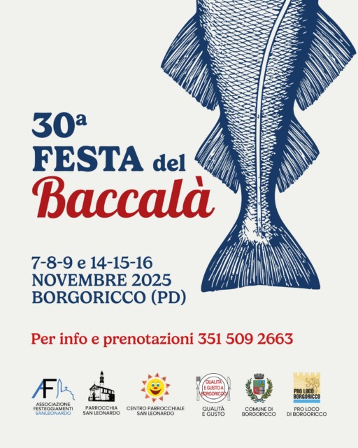 Per la 30esima edizione della Festa del Baccalà, Borgoricco è pronta a farvi venire l’acquolina alla bocca con un menù ricco di sapori.