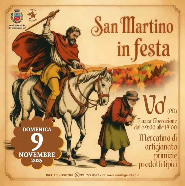 Per questa domenica, Vo’ è pronta ad animarsi con bancarelle di artigianato locale, prodotti stagionali e idee regalo originali. Infatti, si potranno trovare: formaggi, salumi, miele, confetture, vini e ceramiche.
