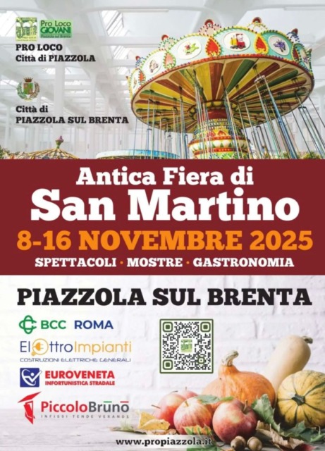 Da sabato 8 a domenica 16 novembre 2025, Piazzola sul Brenta sarà pronta ad accogliere tutti quelli che vorranno essere coinvolti in un viaggio di sapori, spettacoli ed eventi.