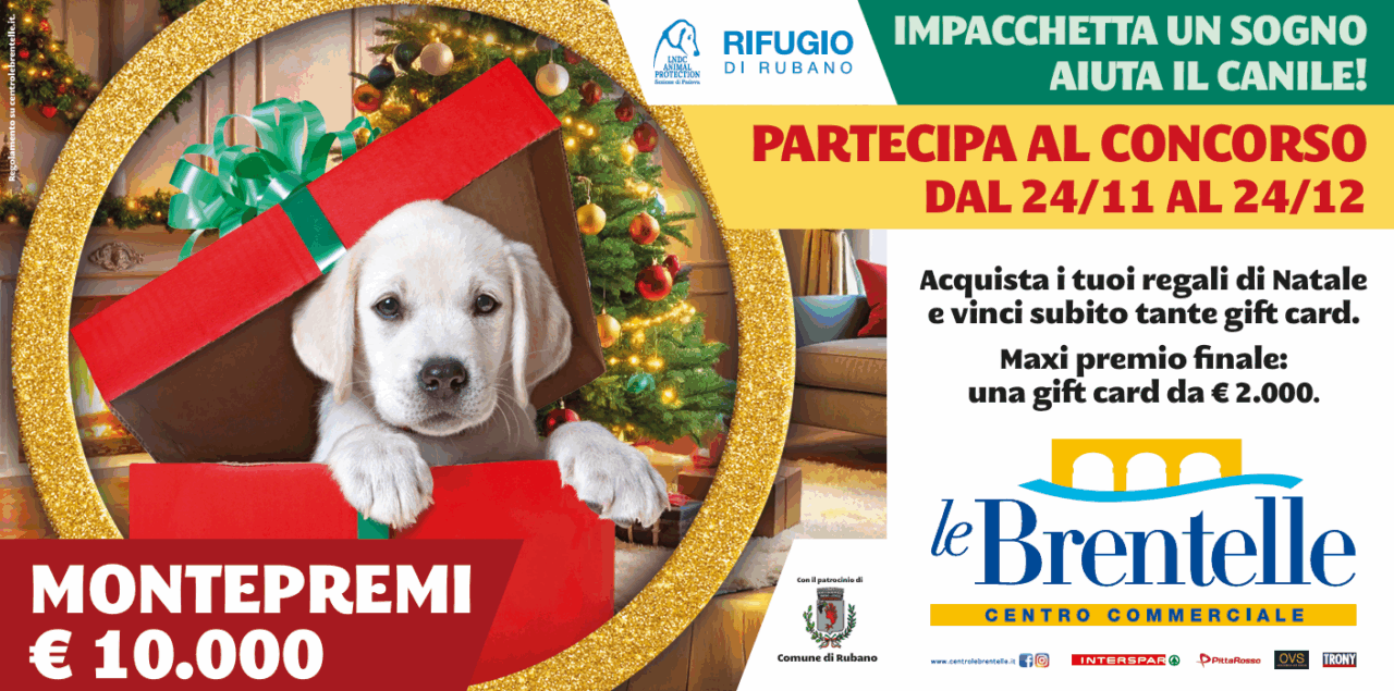 Fino al 24 dicembre prosegue “Impacchetta un sogno, aiuta il canile!” iniziativa solidale a favore del Canile di Rubano, patrocinata dal Comune. Portando i regali acquistati il giorno stesso nel centro commerciale (minimo 10 euro) alla postazione dei volontari al primo piano, si riceve un gettone per giocare al totem digitale, aperto tutti i giorni dalle 10 alle 20.